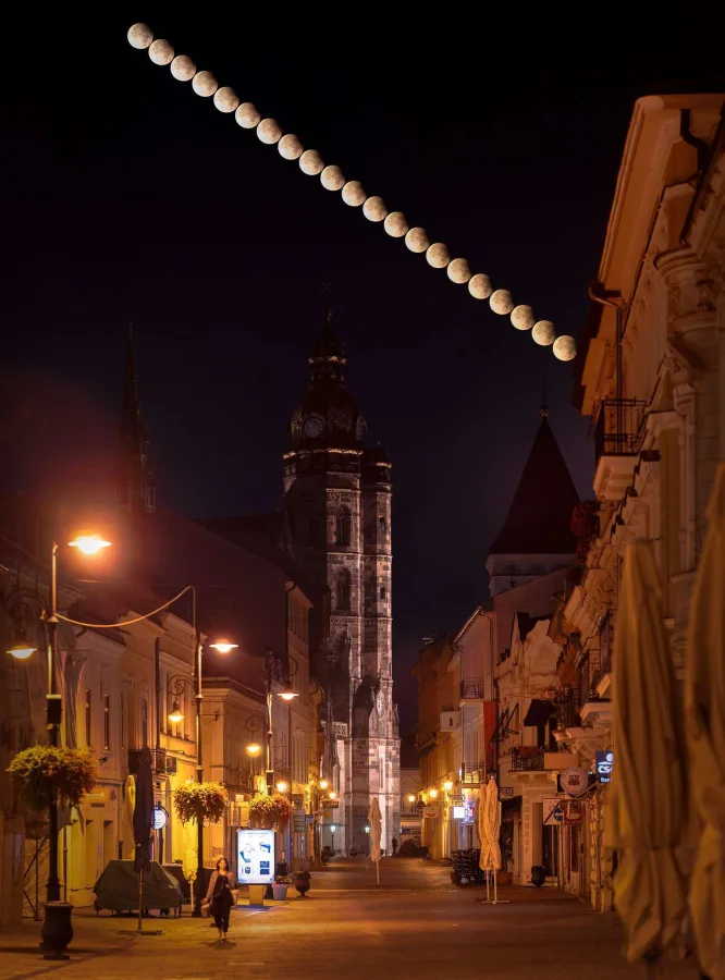 Toto zatmění autor snímku Róbert Barsa pozoroval nad největším kostelem na Slovensku, jenž je nejen duchovním centrem města, ale také architektonickým pokladem, který každoročně přitahuje tisíce turistů. Dóm svaté Alžběty, zasazený do srdce historického centra, je nepřehlédnutelnou dominantou města. Jeho věže ční vysoko nad okolními budovami a tvoří impozantní siluetu, která se stává ještě úchvatnější při pozorování nebeských jevů, jako bylo právě částečné zatmění Měsíce. Sledovat tento astronomický úkaz nad gotickými věžemi Dómu bylo jistě neopakovatelným zážitkem. A nebylo to možná jen o pohledu na Měsíc samotný, ale i o propojení s historií a atmosférou starobylého města.