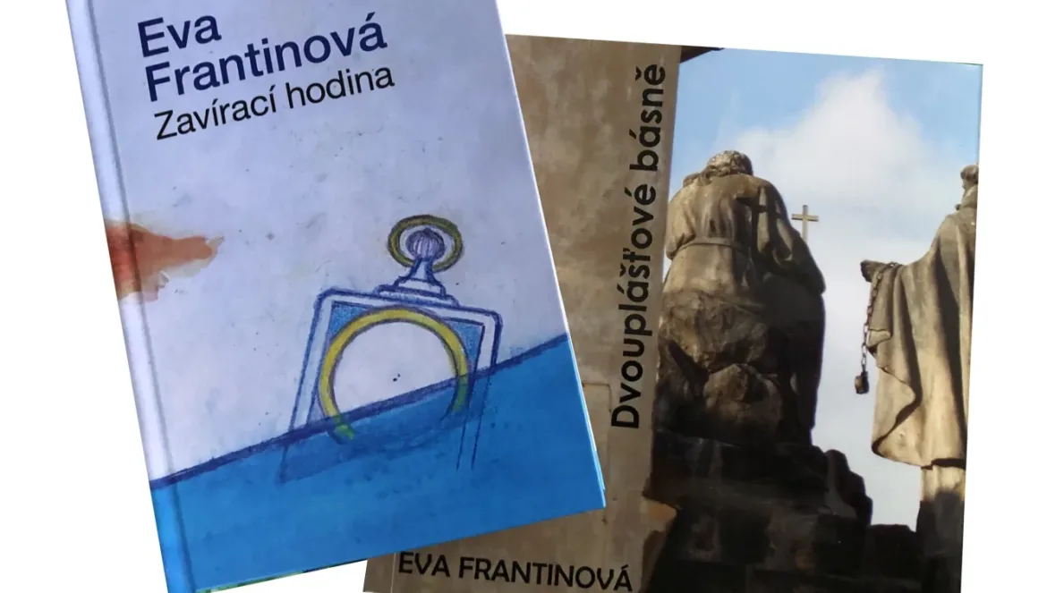 Obě představované sbírky poezie Evy Frantinové mají společného jmenovatele. A tím je osobnost vynikajícího českého básníka bez bázně a hany Karla Sýse, který nás opustil v druhé polovině loňského roku. Verše v knížce Dvouplášťové básně připravil Karel k tisku jako zodpovědný redaktor pro nakladatelství Periskop v edici Báseň na sobotu. Sbírku Zavírací hodina s ilustracemi Vojtěcha Kolaříka vydalo nakladatelství Kmen a Eva Frantinová ji právě Karlovi Sýsovi připsala, a též se ze vztahu k němu (ač jej nejmenuje) v ní i přiznává.