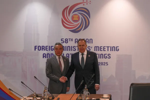 Čínský ministr zahraničních věcí Wang Yi se setkal v Kuale Lumpuru s ruským ministrem zahraničních věcí Sergejem Lavrovem.