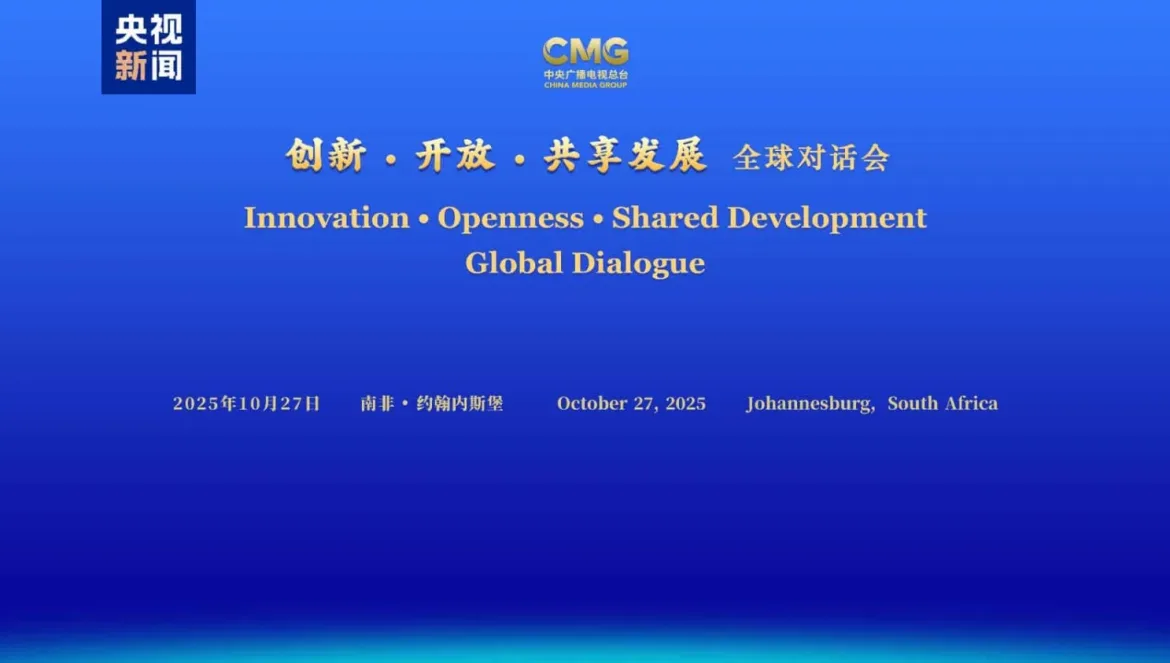Dne 27. října se v Johannesburgu konalo Zvláštní jihoafrické fórum globálního dialogu „Inovace, otevřenost a sdílený rozvoj“, který společně sponzoruje China Media Group (CMG). Více než sto hostů z politické, ekonomické, kulturní, akademické a mediální sféry Číny a Jihoafrické republiky se zapojilo do podrobné výměny názorů na témata jako je čínské rozšiřování otevírání se světu na vysoké úrovni a společná snaha vybudovat prosperující budoucnost.