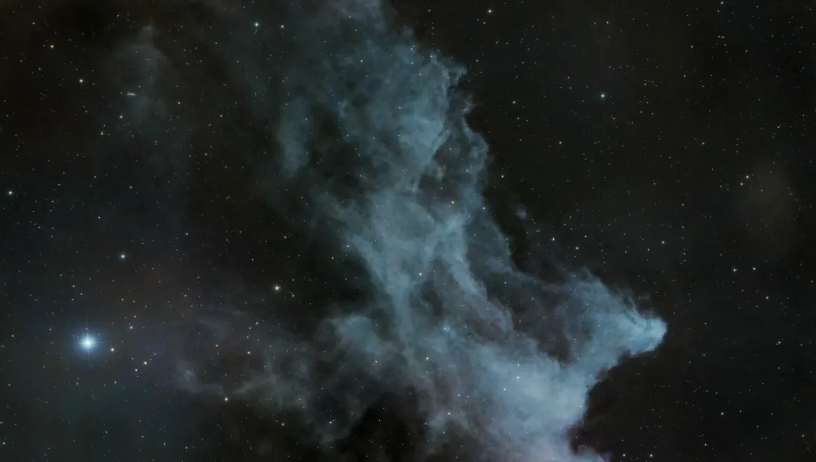 The star Rigel is surrounded by several interstellar clouds, which it illuminates with its brightness. The most famous of these is the nebula NGC 1909, also known as the "Witch's Head". The fine dust in this nebula scatters the star's already blue light into an even bluer shade.