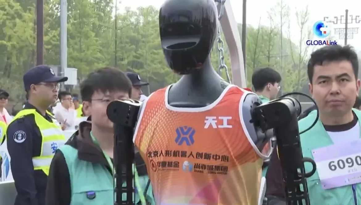 In a historic fusion of athletic tradition and cutting-edge technology, humanoid robots and human runners competed on the same half-marathon course in Beijing on Saturday, the first race of its kind in the world.