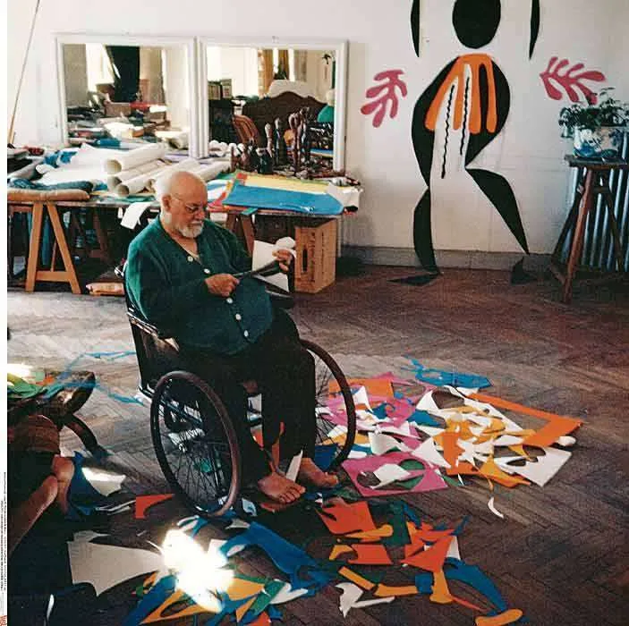 In 1939 his wife Amélie divorced the seventy-year-old Matisse. The immediate cause was Matisse's young assistant and model, the Russian Lydia Delectorsky, who lived with him until the end of his life. During World War II, he became a "degenerate painter" for the German authorities to persecute. He survived the horrors of war in Nice. In 1941 he was diagnosed with duodenal cancer. He underwent a difficult operation at a clinic in Lyon and then settled permanently on the Riviera. He continued to work, but his health forced him to give up normal painting - he could only move around in a wheelchair. Nevertheless, he did not stop creating. He invented the technique of "papiers découpés", the cutting out of paper collages which his assistant glued onto the canvas according to his instructions. Matisse's most popular works created using this technique are Jazz (1947), The King's Sorrow (1952) a Snail (1953). "It is the simplest means that give the artist the greatest possibilities of expression... The artist must never be a prisoner of himself, a prisoner of mannerism, a prisoner of his fame, a prisoner of success." declared the painter. "A pair of scissors is a wonderful tool. Working with scissors and paper is an occupation that completely absorbs me. My joy in making scrapbooks is ever increasing. Why didn't I start doing this sooner? More and more I feel that it is easier to express oneself with a simple cut-out than with a drawing or painting." he claimed.