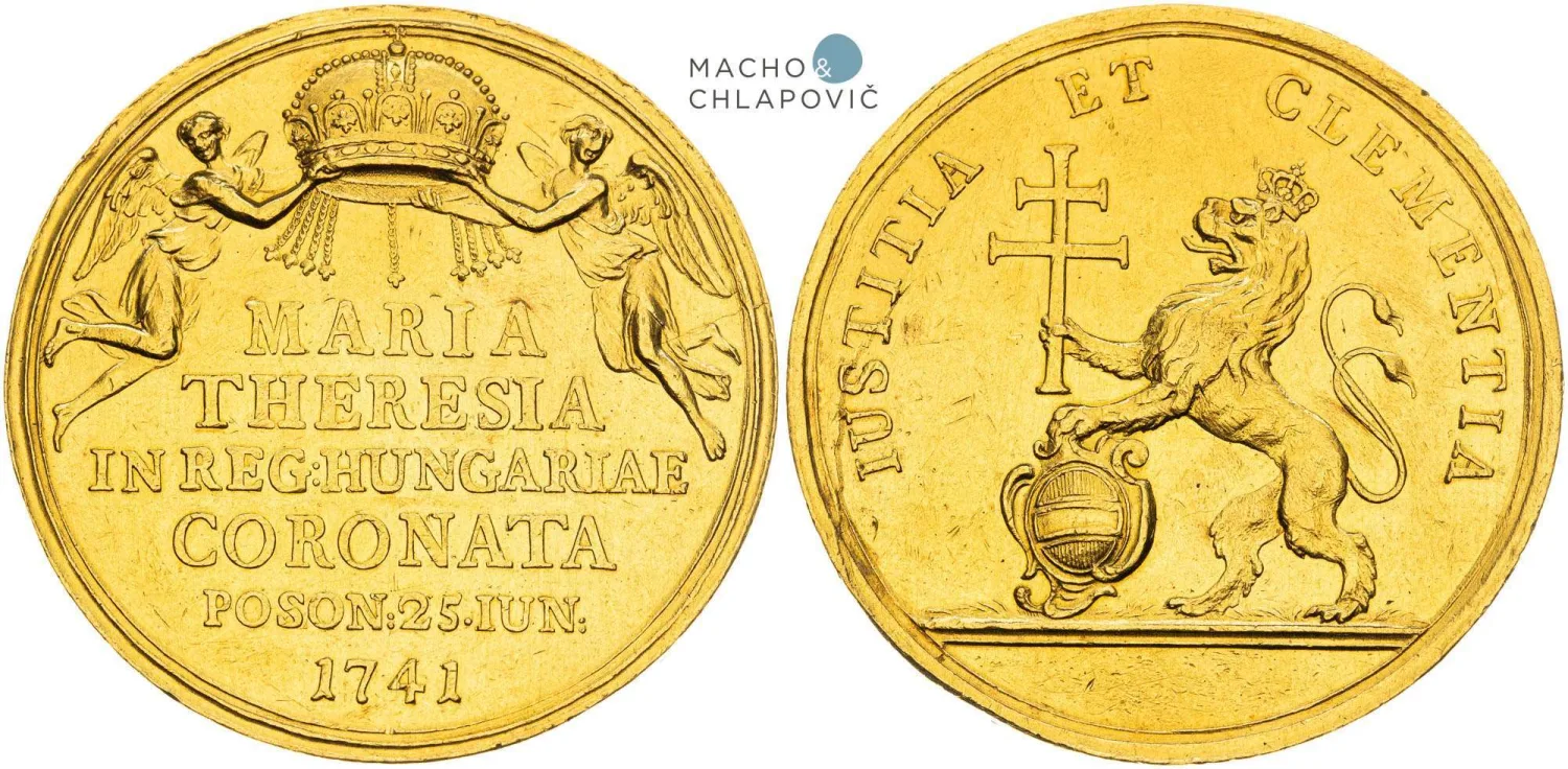 The coronation medals and tokens were created on the occasion of the coronation of Maria Theresa as Queen of Hungary in Bratislava on 25 June 1741. "The order for the coronation medals and tokens for the coronation landed on the desk of the chief Viennese engraver, Antonio Maria de Gennaro, just two and a half months before the actual act," says about the origins of rare collector's pieces Elisha Macho, co-founder of the auction house Macho & Chlapovič. The auction will offer collectors a gold coronation medal weighing 15 ducats with a starting price of EUR 60,000 and two types of coronation tokens. "A large token weighing 1 and ¼ ducats and a small one weighing ¾ ducats will be auctioned to collectors with a starting price of €4,000 each, " said Macho, adding that the gold medal of Maria Theresa from 1741 is the only example that has appeared on the market.