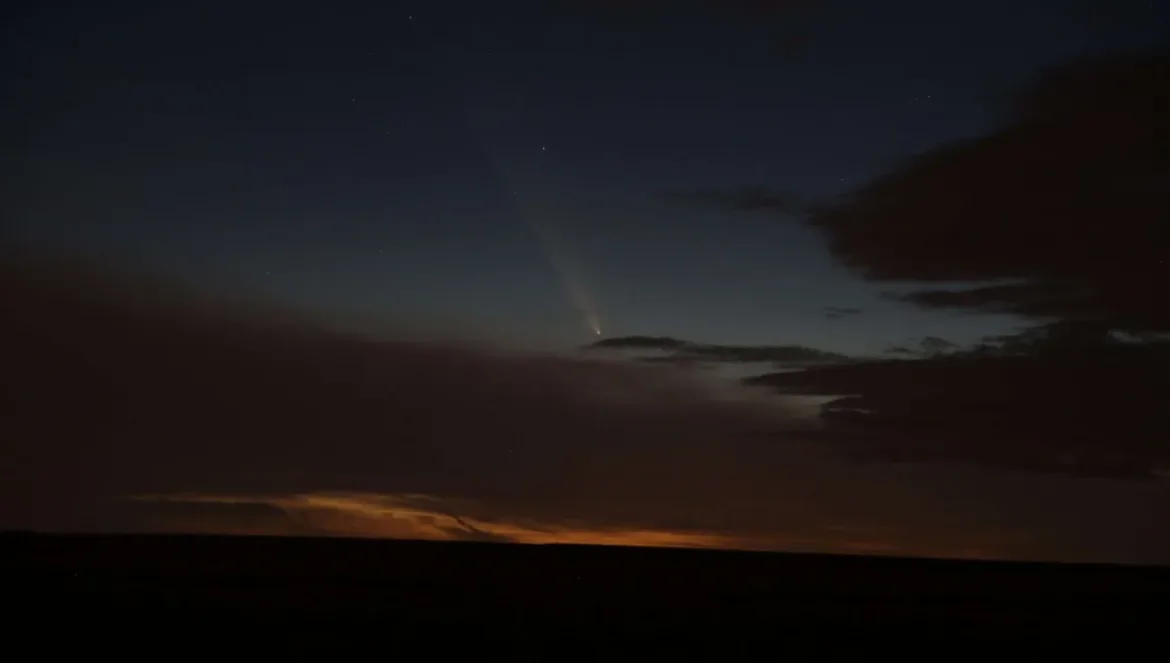 This photo of the comet taken on 13 October 2024 between clouds from the village of Praskačka roughly corresponds to how the comet can be seen with the naked eye in the sky without direct light sources. PHOTO by Jakub Černý