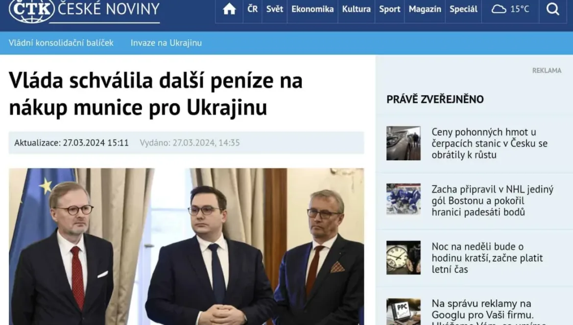 PRAGUE - The government has approved another Czech contribution to an initiative to purchase ammunition from non-EU countries to support Ukraine under attack by Russia. Prime Minister Petr Fiala (ODS) did not specify the amount of the contribution. According to him, 20 countries have joined the initiative. He said this after today's cabinet meeting. He thanked the countries that joined the purchase plan. He said the ammunition would arrive within weeks or months, which is already affecting the situation on the battlefield. The government has expanded the national sanctions list to include two individuals and one legal entity, Fiala said. They are politician and businessman Viktor Medvedchuk, the Voice of Europe company, and politician, media producer and propagandist Artyom Marchevsky. The sanctions are meant to hit a pro-Russian network that has tried to develop an influence operation in the Czech Republic. Citing the secretive regime, Fiala declined to comment on whether the government today discussed filling the sensitive ambassadorial post in Moscow.
