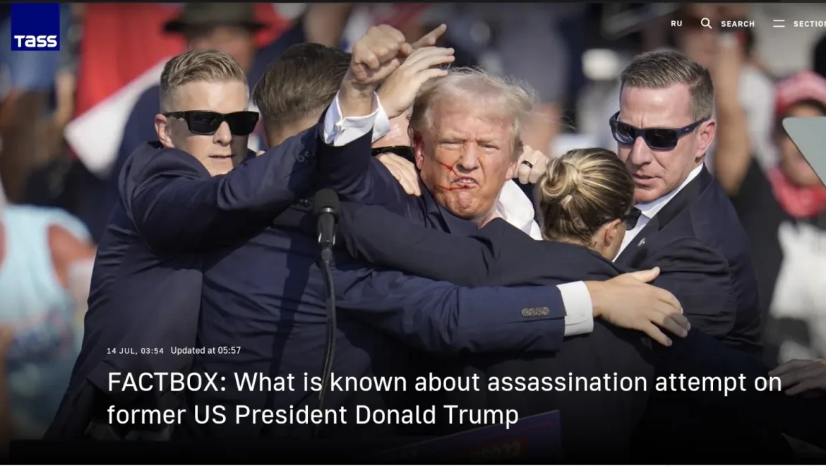 NEW YORK, July 14. /TASS/. Former US President Donald Trump has confirmed that he was shot in the right ear during a speech at a rally in Pennsylvania and that "there was a lot of bleeding.".